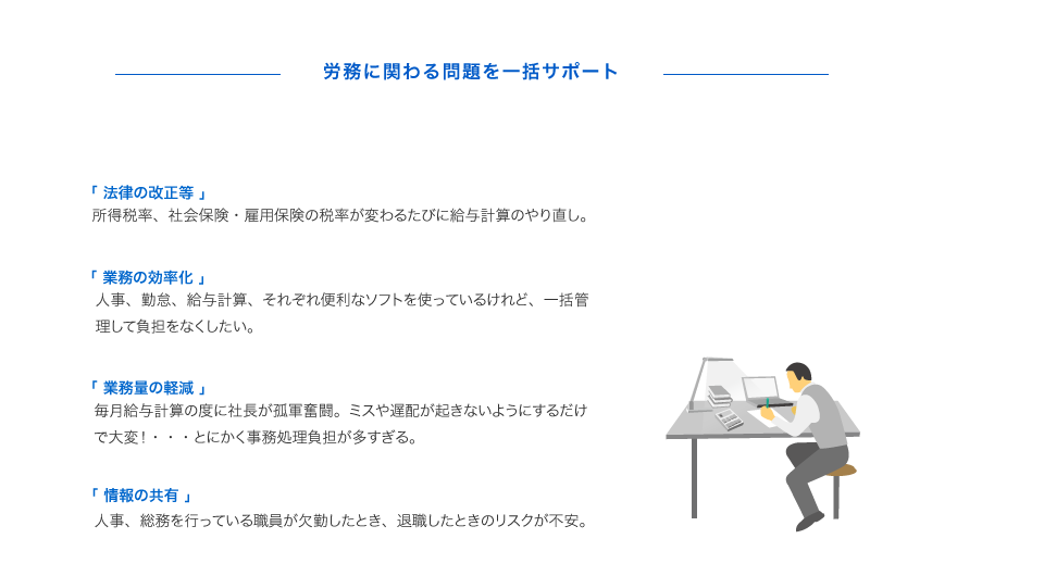 ■ 社会保険料率変更等の変更業務を、当事務所で行うことで事務作業量を削減することができます。